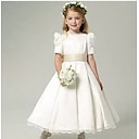 Vestido de niña de flores en línea A Longitud de Suelo Primera Comunión Niñas Vestido de Prom Lindos Satén con Cinturón Cinta Elegante Ajustado 3-16 Años vestido para impresionar |
