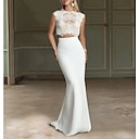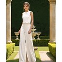 |  | Vestidos de boda overoles hombros al descubierto sin mangas hasta el suelo overoles nupciales de tela elástica con parte superior de encaje color sólido |