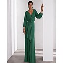 |  | Vestido de Noche A-Line Elegante Formal para Invitadas de Boda Largo con Mangas Largas Cuello en V de Crepé Elástico con Volantes |