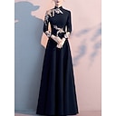 Vestido de Noche A-Line Elegante Vestido Invitada de Boda Día de San Valentín Largo de Piso Manga 3/4 Cuello Ilusión Encaje con Bordados |