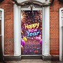 Decoraciones para puertas, cubiertas para puertas, feliz año nuevo, fuegos artificiales, tapiz para puerta, cortina para puerta, decoración, telón de fondo, pancarta para puerta de interior/exterior, |