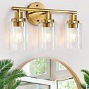 iluminación de baño luz de tocador 3 luces aplique de pared iluminación latón cepillado luz de baño con pantalla de vidrio transparente aplique de pared de baño luz de pared para espejo de cocina |