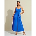 mono de mujer de color sólido con cuello en v vacaciones diarias salir pierna ancha ajuste suelto correa de espagueti caqui 3xl verano |