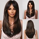 Pelucas para mujer, peluca con flequillo, peluca sintética de pelo natural, larga y recta en capas |