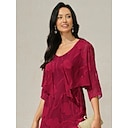 Mujer se encoge de hombros Lentejuelas Retazos Color sólido Floral Graphic Elegante Básico Casual Manga 3/4 Asimétrico Tops cortos Invitado a la boda boda en la playa Rojo Verano Primavera Otoño |