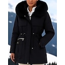 Mujer Abrigo de invierno Impermeable Resistente al Viento Bolsillo Estola Diario Casual Regular Con Capucha Ajuste regular Manga Larga Ropa de calle Negro Marrón Caqui Otoño Invierno |