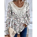 Blusa de Mujer Túnica Encaje Splicing Cuello en V Manga Larga Floral Impresión de Encaje Regular Tops Casual Festivo Negro Blanco Amarillo Rosa Rojo Primavera y Otoño Prefall |