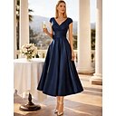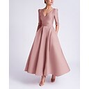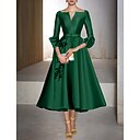 Corte A Vestido Midi Vestidos de coctel Vestidos de fiesta Elegante Media Manga Escote en Pico Formal Invitado a la boda Satén con Bolsillo |