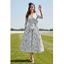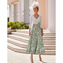 Corte A Vestidos Hasta el Tobillo Vestidos de coctel Vestidos de fiesta Elegante Vintage Media Manga Escote en Pico Invitado a la boda Iglesia Desmontable Jacquard con Lazo(s) Flor |