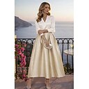 Dos Piezas Vestido Midi Vestidos de coctel Vestidos de fiesta Elegante Bloque de Color Manga Larga Escote en Pico Boda Ropa de fiesta Satén con Plisado |