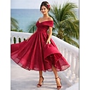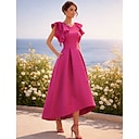 Funda Columna Asimétrica Hasta el Tobillo Vestidos de coctel Vestidos de fiesta Elegante Vintage Sin Mangas Hombros Caídos Formal Invitado a la boda Satén con Volantes |