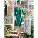 Funda Columna Hasta la Rodilla Vestidos de coctel Vestidos de fiesta Elegante Minimalista Manga 3/4 Escote en Pico Formal Invitado a la boda Satén con Cinta / Lazo Color Puro |
