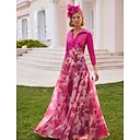 Corte A Hasta el Suelo Vestido Invitada Boda Vestido formal Vestido de noche Vestido de Madrina Manga 3/4 Escote en Pico Elegante Formal Invitado a la boda Gasa con Flor |