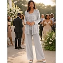 Traje de pantalón Traje de 3 piezas Hasta el Suelo Vestido de Madrina Sin Mangas Camiseta con cuello redondo Elegante Invitado a la boda Gasa Encaje Bolero incluido con Lentejuela |
