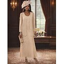 Dos Piezas Funda Columna Hasta el Tobillo Bordado con cuentas Vestido Invitada Boda Vestido formal Vestido de Madrina Manga Larga Escote en Pico Elegante Brillos Y Estrellas Invitado a la boda |
