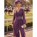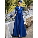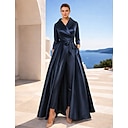 Traje de pantalón Hasta el Tobillo Vestido de Madrina Manga 3/4 Cuello Camisero Elegante Fiesta Sencillo Formal Invitado a la boda Satén con Lazo(s) |