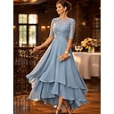 Corte A Hasta el Tobillo Vestido de Fiesta Vestido Cóctel Vestido Invitada Boda Vestido de Madrina Manga 3/4 Joya Elegante Talla Grande Invitado a la boda Fiesta de Boda Gasa Encaje con Fruncido |