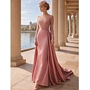 Corte A Cola de Corte Vestido Invitada Boda Vestido formal Vestido de noche Vestido de Madrina Manga Larga Camiseta con cuello redondo Elegante Invitado a la boda Noche formal Satén elástico con |