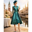 Corte A Vestido Midi Vestido de Fiesta Vestido Cóctel Vestido Invitada Boda Vestido de Madrina Manga 3/4 Escote en Pico Elegante Vintage Formal Satén con Encaje Un Color |