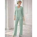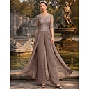 Dos Piezas Traje de pantalón Hasta el Suelo Vestido de Madrina Media Manga Barco de cuello Elegante Tallas pequeñas Invitado a la boda Iglesia Gasa con Apliques |