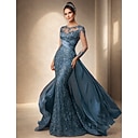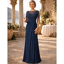 Corte A Corte Trompeta Sirena Funda Columna Hasta el Suelo Vestido Invitada Boda Vestido formal Vestido de noche Vestido de Madrina Manga 3/4 Media Manga Escote en Pico Joya Elegante Vintage Fiesta |