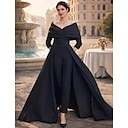 Vestido de fiesta A-line asimétrico vestido de cóctel vestido de invitada de boda vestido de madre de la novia manga 3/4 escote barco elegante simple formal invitada de boda con color sólido |