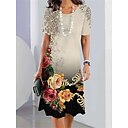 Mujer Mini vestido Vestido elegante Elegante Formal Fiesta de Cóctel Ajuste regular Floral Manga Corta Cuello Barco Blanco Verde Trébol Caqui Gris Verano |