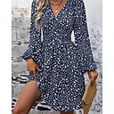 Mujer Mini vestido Vestido de flores Vestido Estampado Clásico Moderno Diario Festivos Noche Ajuste regular Plano Manga Larga Escote en Pico Azul Piscina Negro Primavera Otoño |