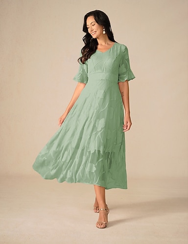 Vestido de graduación para mujeres vestido midi vestido de gasa vestido de shift elegante vacaciones cumpleaños formal boda invitada de boda ajuste suelto floral manga corta cuello redondo verde
