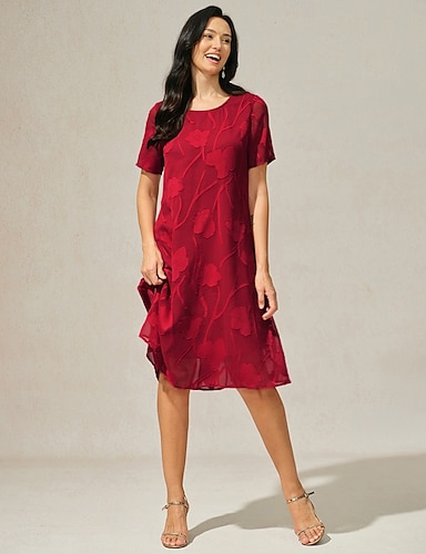 Mujer Mini vestido Vestido Cóctel Vestido Invitada Boda Vestido de raso Vestido Escalonado Elegante Clásico Fiesta de Noche Cita Noche Ajuste regular Color puro Manga Corta Cuello Barco Rosa Vino Rojo