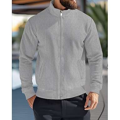 Hombre Chaqueta de Pana Chaqueta casual Vacaciones Diario Transpirabilidad Bolsillo Otoño Invierno Plano Moda Clásico Cuello Mao Regular Albaricoque Negro Azul Marino Gris Ligero Verde Ejército