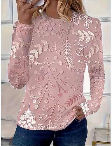 Camiseta de mujer de cuello redondo manga larga túnica floral gráfica plantas vintage elegante clásica de cuello redondo regular diaria fin de semana impresión negra blanca rosa azul verde verano