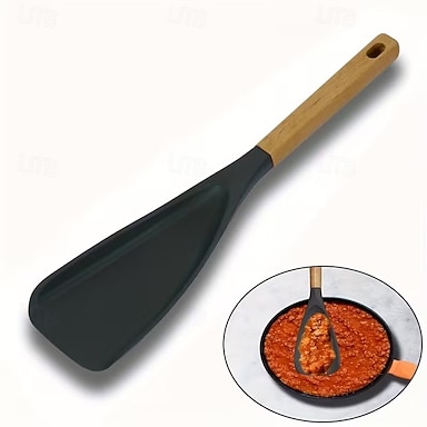 Espátula multifunción de silicona de 12,2" para ensalada con mango de madera, utensilios de cocina de silicona mate, cuchara multifunción para mezclar y raspar.