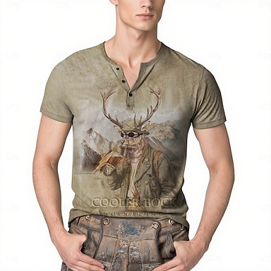 Camiseta de Lederhosen Match Camisa Henley bávaro Munich Alemán alpino Herencia Camiseta Gráfico para Hombre Adulto Impresión 3D para Carnaval Cerveza Oktoberfest Fiesta