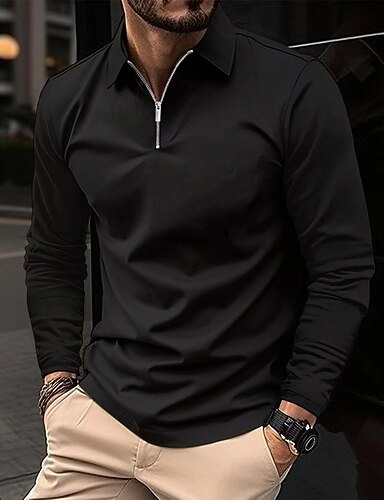 Hombre polo con cremallera POLO Exterior Casual Diseño Cremallera de un cuarto Manga Larga Moda Básico Color sólido/liso Cremallera de un cuarto Primavera & Otoño Ajuste regular Negro Blanco Vino
