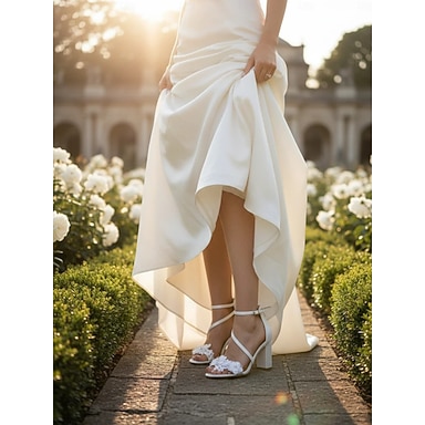Corte A Vestido Midi Vestido de novia de encaje blanco Vestido blanco pequeño Elegante Vestidos Blancos Manga Corta Cuello Alto Boda con Encaje