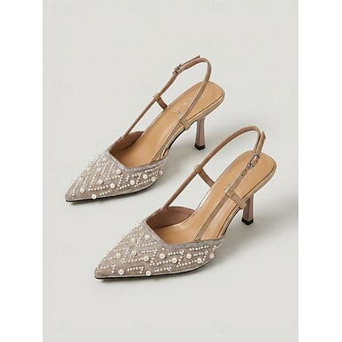 Zapatos de tacón nude con tira trasera para mujer: zapatos de salón con punta afilada adornados con perlas para invitadas a bodas en jardines. &elegantes eventos de verano