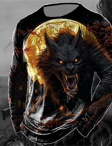 Hombre 3D Hombre lobo Camiseta Manga Larga Camiseta Impresión 3D Cuello Barco Camisa Moda Exagerado Calle Casual Diario Azul Piscina Morado Naranja Verano Primavera Otoño Ropa S M L XL XXL XXXL