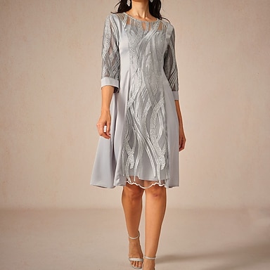 Mujer Longitud del té Vestido de encaje Elegante Invitado a la boda Cita Ajuste regular Color sólido Sin Mangas Cuello Barco Gris Verano Primavera Otoño