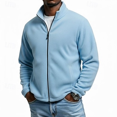 Hombre Sudadera Sudadera con cremallera Sudadera de polar Verde Trébol Beige Gris Azul claro Cuello Mao Plano Deporte Casual Diario Ropa de calle Básico Casual Otoño Invierno Ropa Sudaderas con