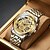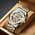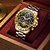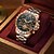 Reloj profesional para hombre, reloj de lujo bicolor de acero inoxidable con fase lunar. &Diseño esqueletizado, reloj analógico de negocios resistente al agua, regalo elegante para hombres, esposos,