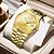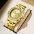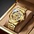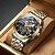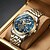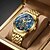 Reloj de lujo dorado para hombre, reloj de pulsera de cuarzo para negocios con fecha y día, reloj analógico de acero inoxidable dorado con números romanos y caja de regalo, regalo elegante e