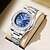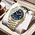 Reloj de pulsera de cuarzo de lujo para hombre con esfera azul, de acero inoxidable bicolor, con indicador de día y fecha, bisel estriado y números romanos, reloj analógico elegante e impermeable para