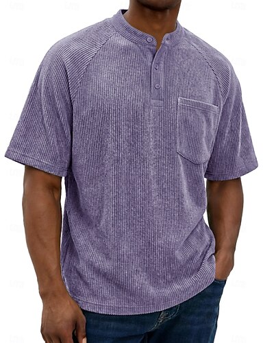 Hombre Camisa de Pana Henley Shirt Camiseta superior Manga Corta Henley Verano Primavera Otoño Color sólido Moda Design Casual Bolsillo Mangas raglanes Casual Diario Exterior Negro Blanco Azul Claro