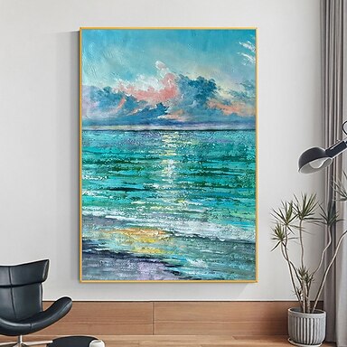 Pintura al óleo hecha a mano, lienzo, arte de pared, decoración, moderno, abstracto, amanecer, vista al mar, paisaje para decoración del hogar, marco estirado, pintura colgante/pintura enrollada sin