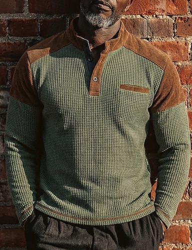 Hombre Camiseta con diseño de gofre Camiseta Manga Larga Escote Chino Todas las Temporadas Bloque de color Tradicional / Retro Casual Cerrar Exterior Hogar Deporte Caqui Camiseta superior para hombre