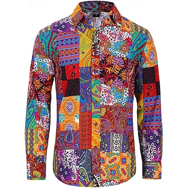 Retro Antiguo Boho Años 70 Camisas Hippie Retazos Psicodélico Disfraz Hombre Víspera de Todos los Santos Carnaval baile callejero Fiesta temática retro Festival Adulto Camisas