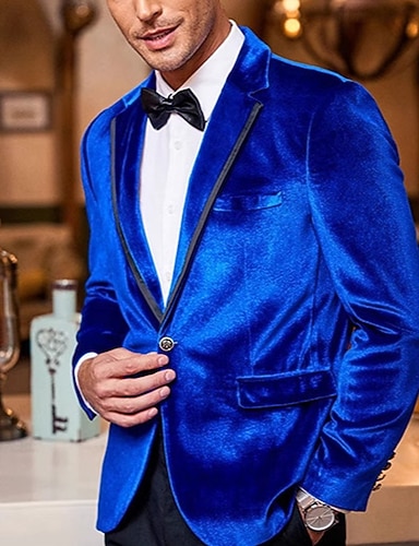 Hombre Americanas De Terciopelo Cuello de muesca Navidad Fiesta Lentejuelas Color sólido Blazer de terciopelo Azul Piscina Negro Rojo A Medida Recto 1 botón