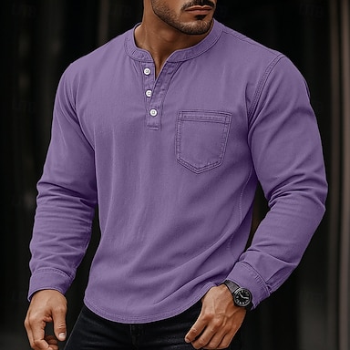 Hombre Henley Shirt camiseta Manga Larga Plano Cosecha Retro Antiguo Casual Impreso Prenda teñida Desteñido Henley Casual Primavera Otoño Todas las Temporadas Morado Gris Oscuro Camiseta Henley
