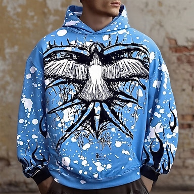 Hombre Águila Sudadera Moda Diario Casual Manga Larga Con Capucha Exterior Vacaciones Ropa de calle Azul Piscina Caqui Bolsillo Estampado Primavera Otoño Diseñador S M L XL 2XL 3XL